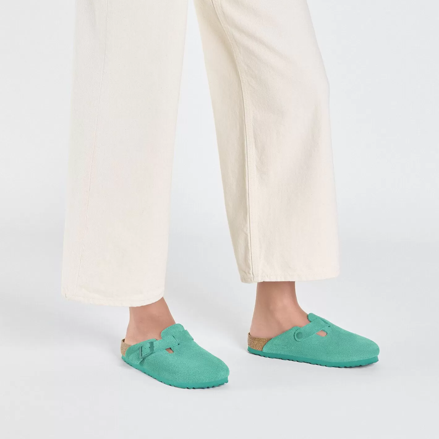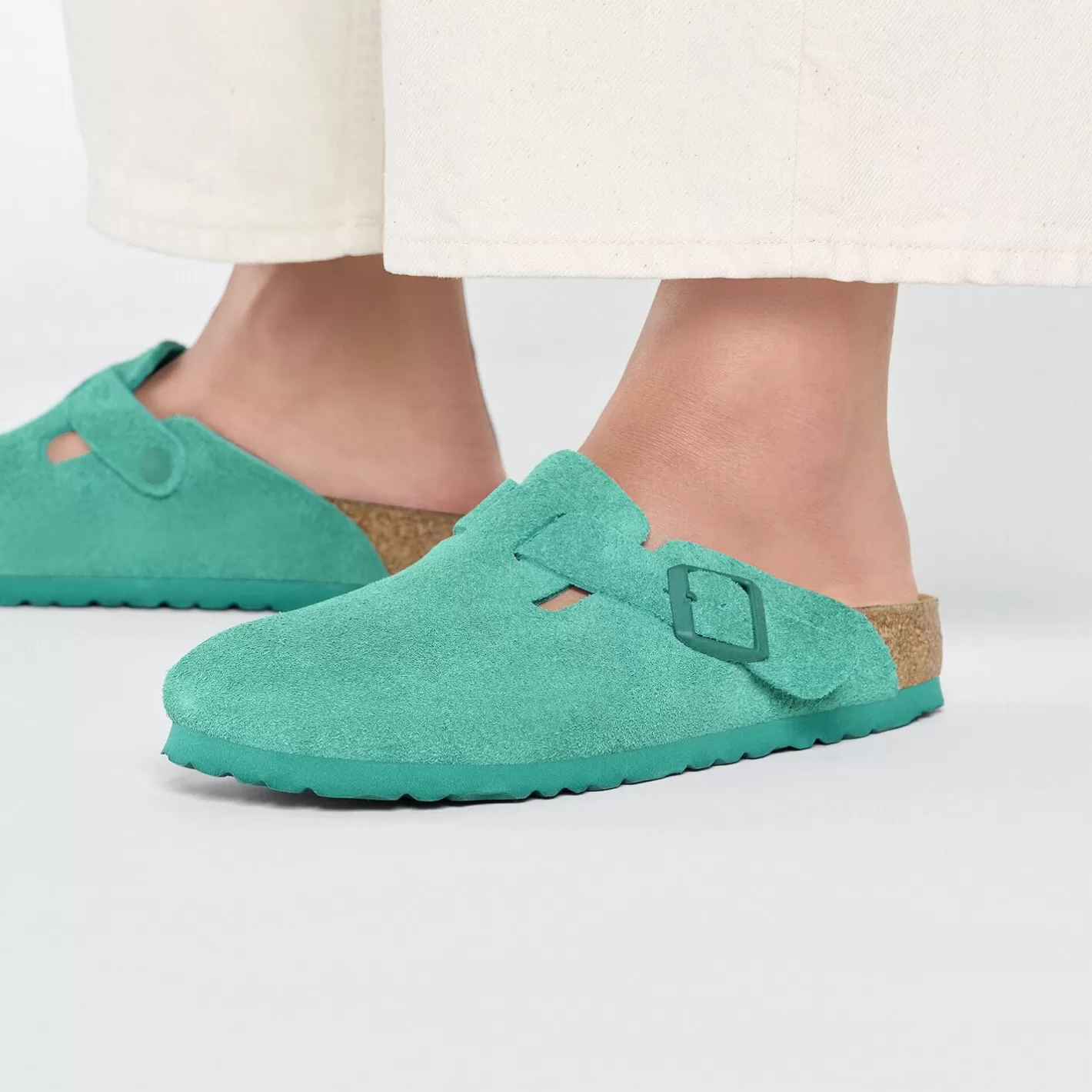 The Birkenstock Boston Clog Is A Veritable Classic That Can Easily Be Worn All Year Round. The Color-Coordinated Buckles With A Textile Feel And A Matte Design As Well As The Color-Coordinated Outsole Are Additional Eye-Catchers. The Upper Is Made From Soft Suede.
