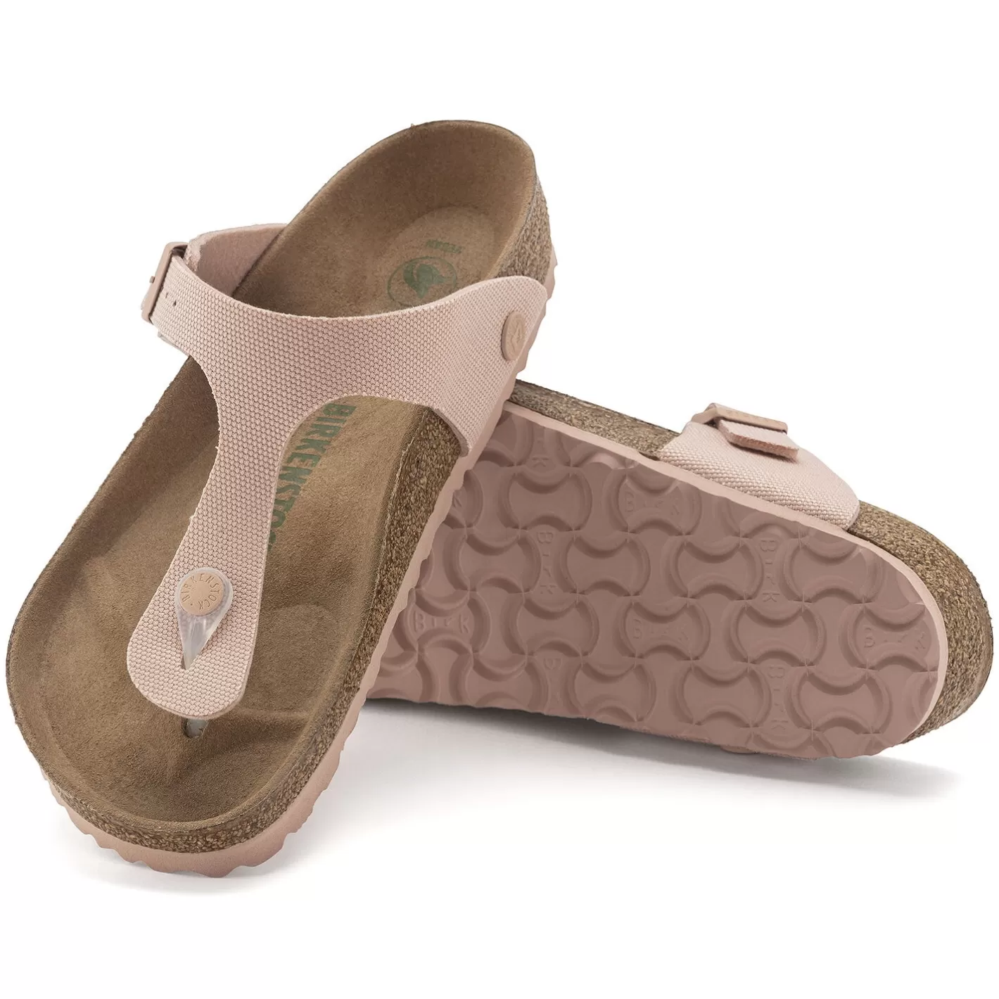 The Birkenstock Gizeh Is A Genuine Classic That Combines Optimum Grip With Minimalist, Fashionable Design. This Popular Sandal Has Been Given An Update In A New Material, With A Vegan Version Now Available. It Is Entirely Free Of Animal Products, As Verified By Independent Testing Laboratories. The Color-Coordinated Buckles With A Textile Feel And A Matte Design As Well As The Color-Coordinated Outsole Are Additional Eye-Catchers. The Upper Is Made From A Soft Fabric.